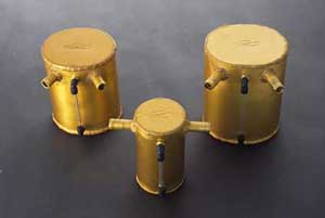 0.6ℓ(外形寸法 φ80mmx140mm)¥9,900(税込み) 1.5ℓ(外形寸法 φ125mmx110x150)¥22,000(税込み) 2ℓ(外形寸法 φ136mmx115x175) ¥27,000(税込み) ※JAF公認レース2000cc以上クラスには3ℓのオイルキャッチタンクを特注で製作します |