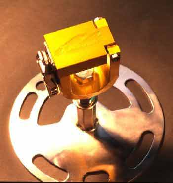 スコップの固定部はアルミ削り出しで製作されています ホルダー部は、アルマイト加工によるゴールド仕上げ!トップ部分に「最新T.K TECHロゴ」が光ります。 取付口やロック部分はステンレスを使用し、錆びにくく強度も十分です。 ロック部分には小型の南京鍵がかけられます スコップはワンタッチ脱着!! しかも、このスコップホルダーは鍵がかけられる仕様です ※ スコップ・南京鍵は別売りです。